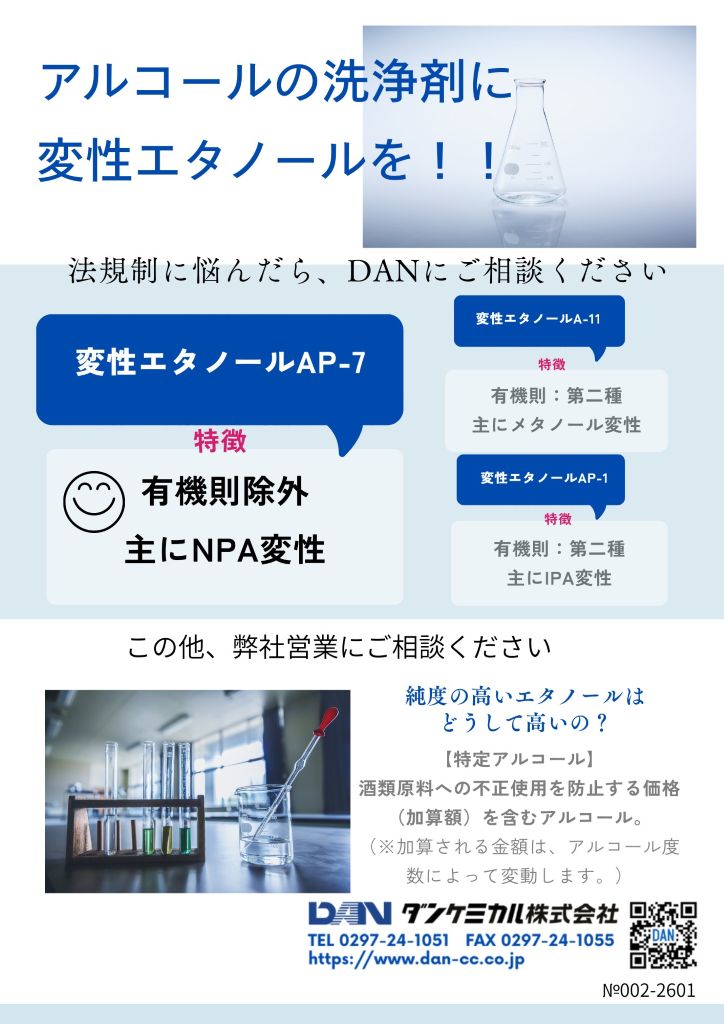 アルコールの洗浄剤に変性エタノールを!!